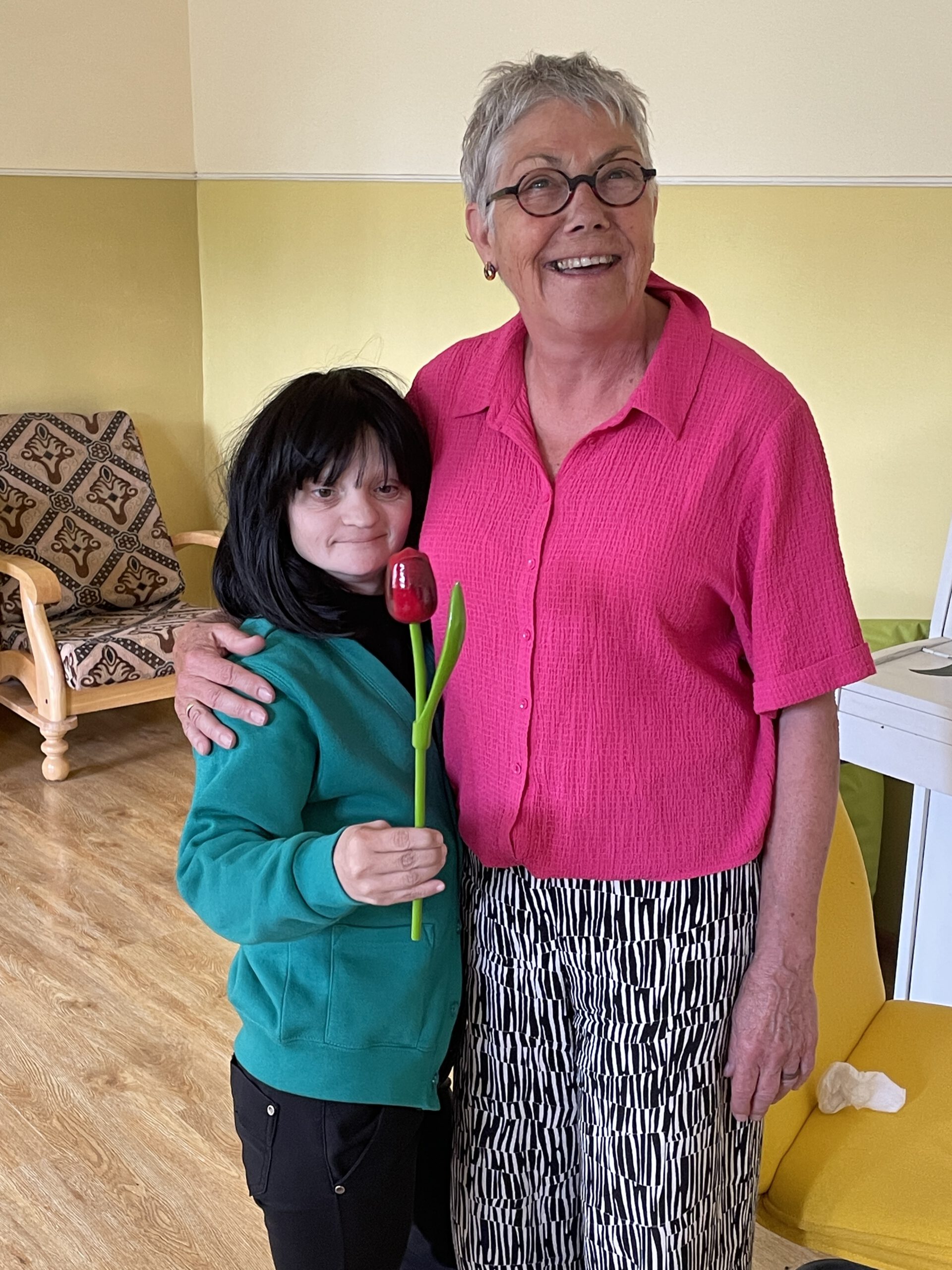 Asmik is wat slaperig als ze ons ziet maar herkent Jacolien. We gaan even op de foto en dan gaat ze (hoogstwaarschijnlijk) weer naar haar bed.