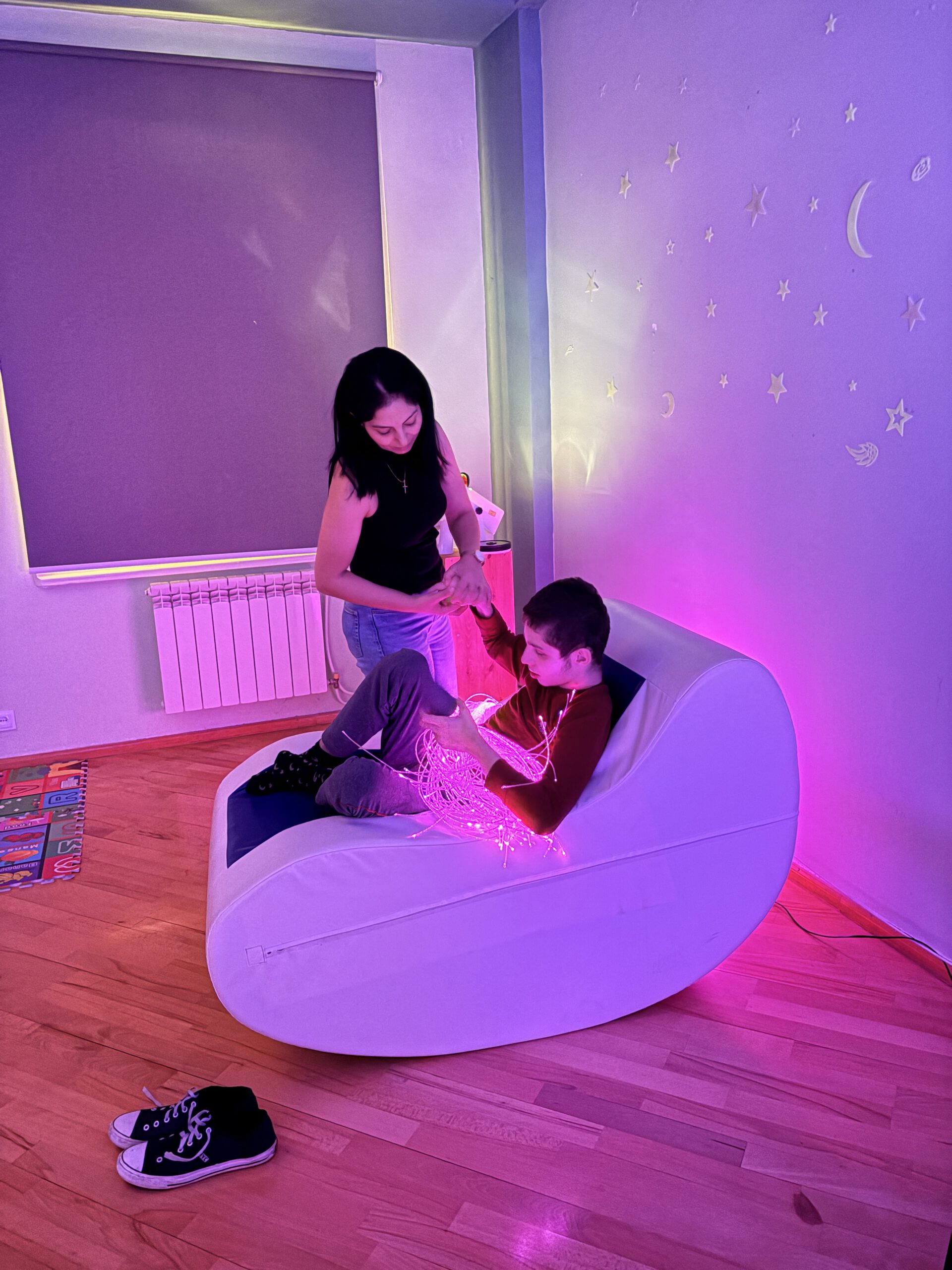 We zijn in de snoezelruimte ruimte geweest en hebben daar de begeleiders gesproken over wat de effecten zijn van de snoezelruimte .In de ruimte was Valentina, Een meervoudig gehandicapt meisje . Valentina heeft enorme vooruitgang geboekt dankzij de snoezelruimte . Na haar oefening kan zij heel goed ontspannen op het waterbed. Vaak valt ze in slaap. Ze geniet er heel erg van. daarna zijn we verder rondgeleid en hebben we besproken wat toekomstige ontwikkelingen zijn van het kindertehuis en de mogelijke samenwerking besproken!