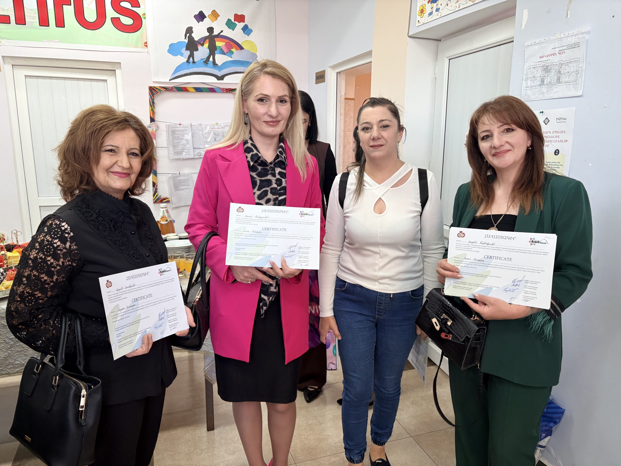 We zijn gestart in Gyumri waar we certificaten hebben uitgedeeld aan leerkrachten van kleuterscholen die een training hebben gehad in het signaleren van ontwikkelingsachterstanden.
